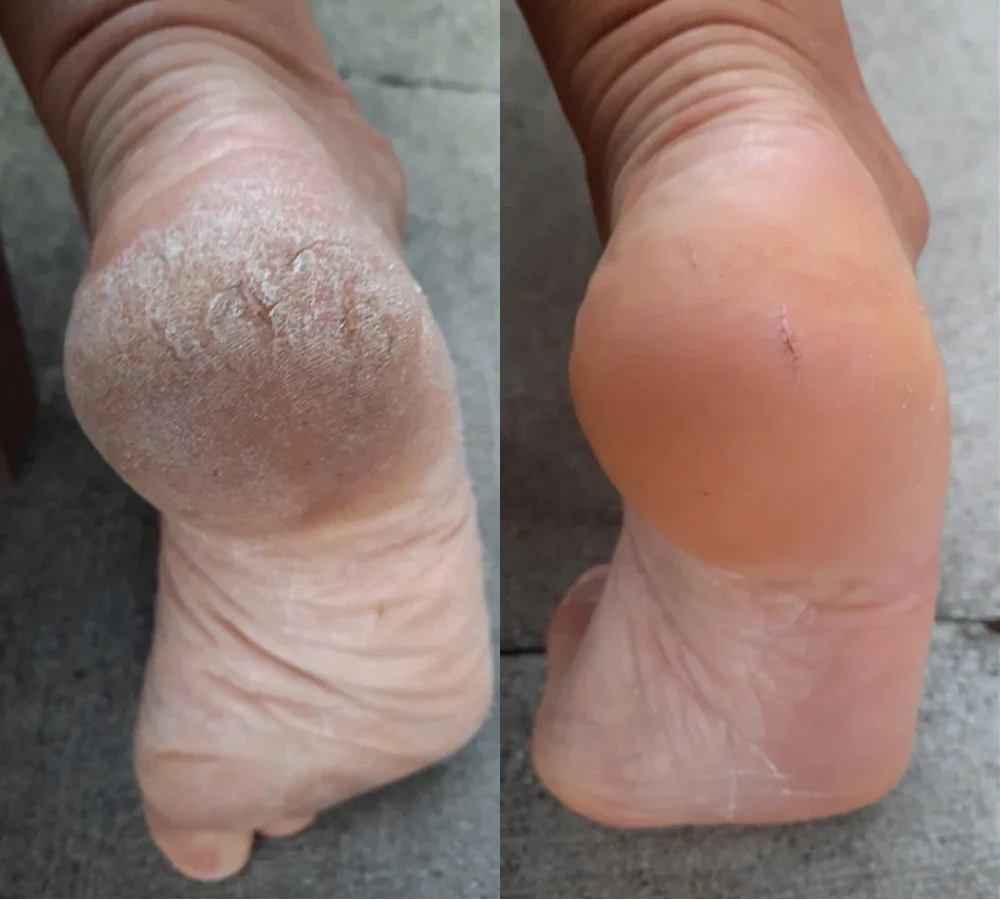 ✔️ Tar bort sprickor, förhårdnader och torr hud